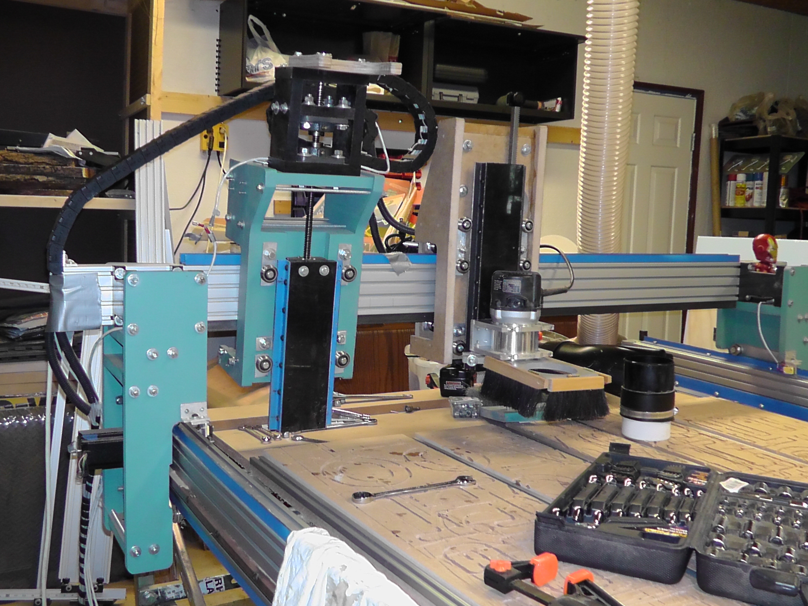 During these early tests I still had the previous Leadscrew based Z axis mounted next to the Warp Drive carriage. I have often wondered what it would be like to have a dual router head. I could use one for drilling and one for cutting. Anyway, this is the closest I have come so far.